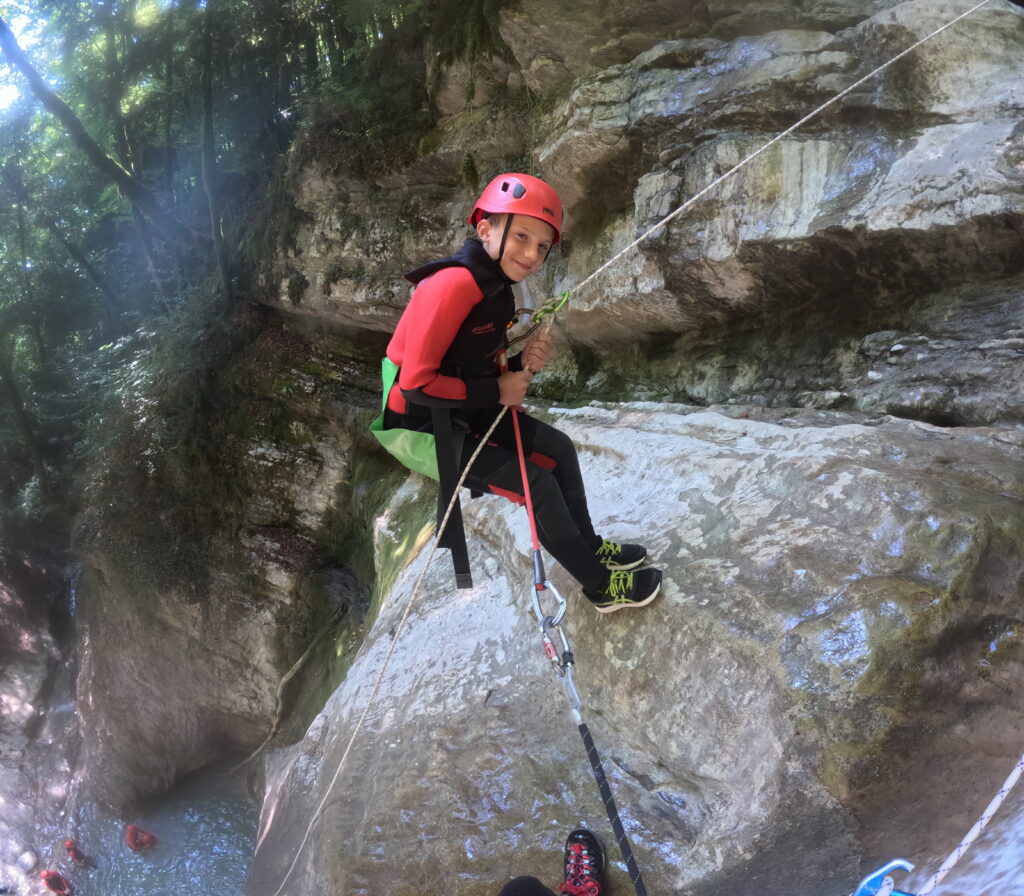 Situé sur les hauteurs du lac d’Annecy, le canyon d’Angon version découverte est une aventure idéale pour s’initier au canyoning dès 10 ans. Ce parcours accessible et ludique offre une immersion rafraîchissante dans un cadre spectaculaire, entre falaises et forêt.